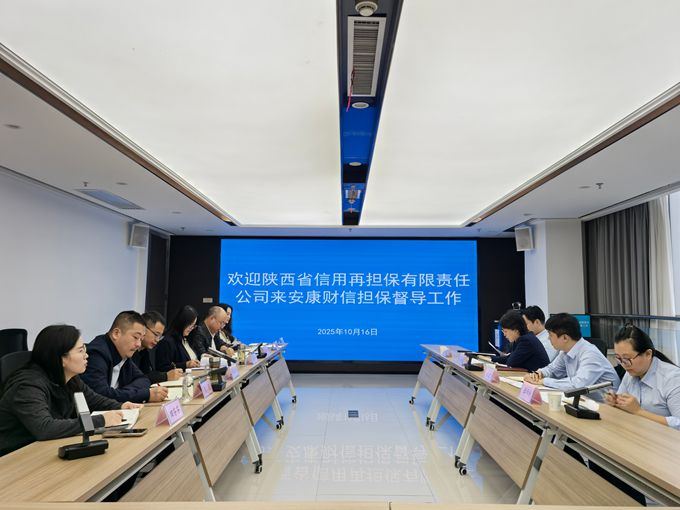 10月16日,陕西省信用再担保有限责任公司党委委员、副总经理李璐带领督导组一行来安康财信担保开展2025年度政府性融资担保体系政策目标落实专项督导工作,并召开汇报座谈会议。安康财信担保总经理陈步华、副总经理张万坤、相关部门负责人参加会议。
