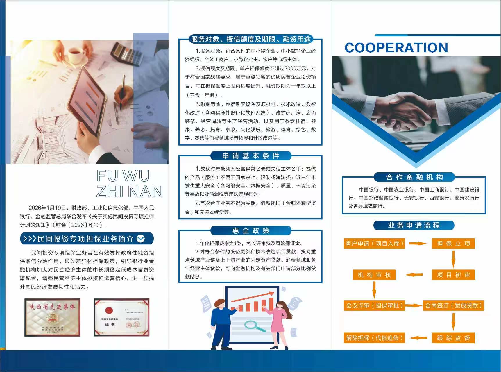 紧跟政策部署 强化使命担当。1月29日,市财政局组织召开全市财政金融协同发展座谈会,安排落实财政金融协同一揽子政策,协同推进财政部等四部门《关于实施民间投资专项担保计划的通知》(财金〔2026〕6号)要求落地;公司迅速制定印发《实施民间投资专项担保业务行动方案》,健全机制保障,强化政策落实;组织内部专题培训,提升业务操作水平;制作宣传彩页,拓宽政策受惠群体。