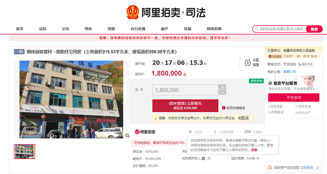 一、拍卖标的: 镇坪县联盟村一组的住宅用房(土地面积215.53平方米,建筑面积598.98平方米)、镇坪县联盟村一组的经营用房(土地面积409.86平方米,建筑面积409.86平方米)